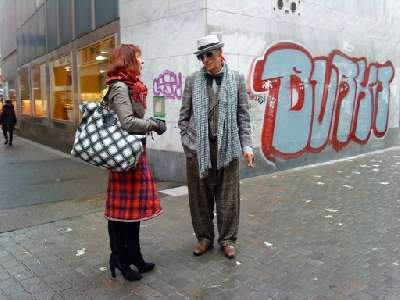 Richtig nett fand ich es, dass sie das fotografieren erlaubten und ausserdem genauso stehen blieben, wie sie es eben gerade taten. - Die perfekten Kandidaten für das fotoblog 'advancedstyle', welches für Erheiterung und auch für manche Anregung gut ist und besonders bei etwas reiferen Jahrgängen besonders beliebt sein dürfte...