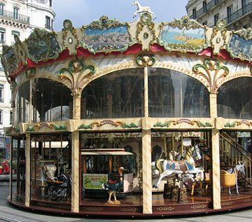 Auch das Glücksgefühl auf dem Karussell, als ich als kleines Kind meine seltenen Runden auf einem Pferdchen drehen durfte, wird mir unvergesslich sein. Die Empfindung beim Schweben und die Drehbewegung, würde ich heute am ehesten mit 'high sein' beschreiben wollen. das kommt wohl dem früher gebräuchlichen 'siebten Himmel' am nächsten.